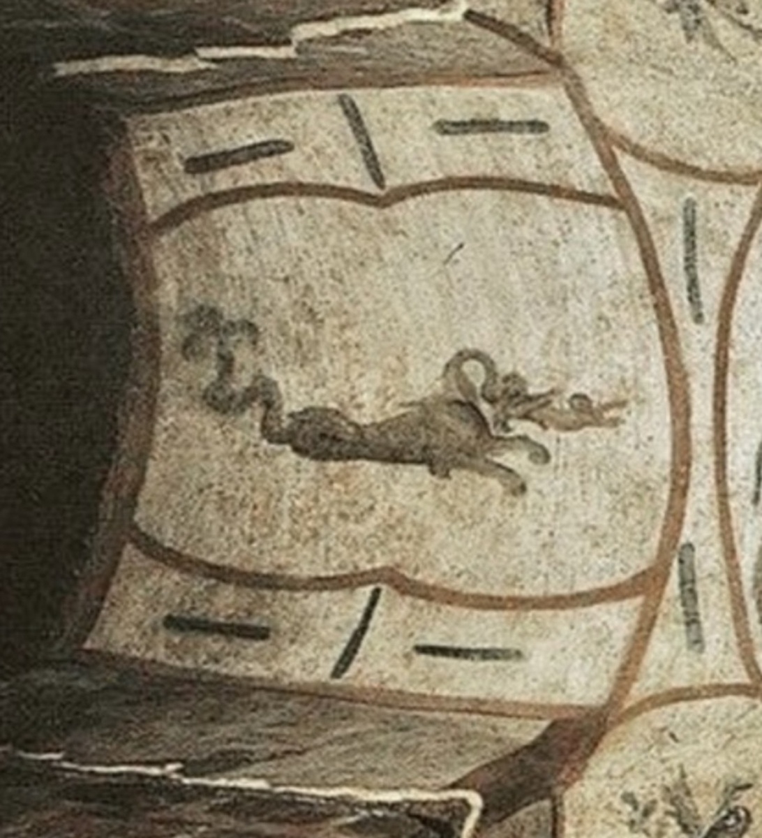 С двух сторон от центра изображён Иона. На фреске слева, Иону бросают с корабля, а справа его поглощает кит.